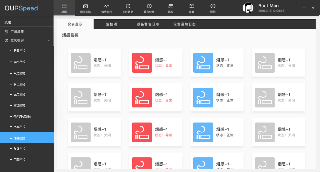 煙感:通過在機房的天花板上布置煙霧感應(yīng)器,煙感輸出信號通過4芯電源線連接到SPD-6500GSM系列環(huán)境監(jiān)控主機開關(guān)量接口,當(dāng)機房出現(xiàn)煙霧時,系統(tǒng)會立即報警,通知機房管理人員。