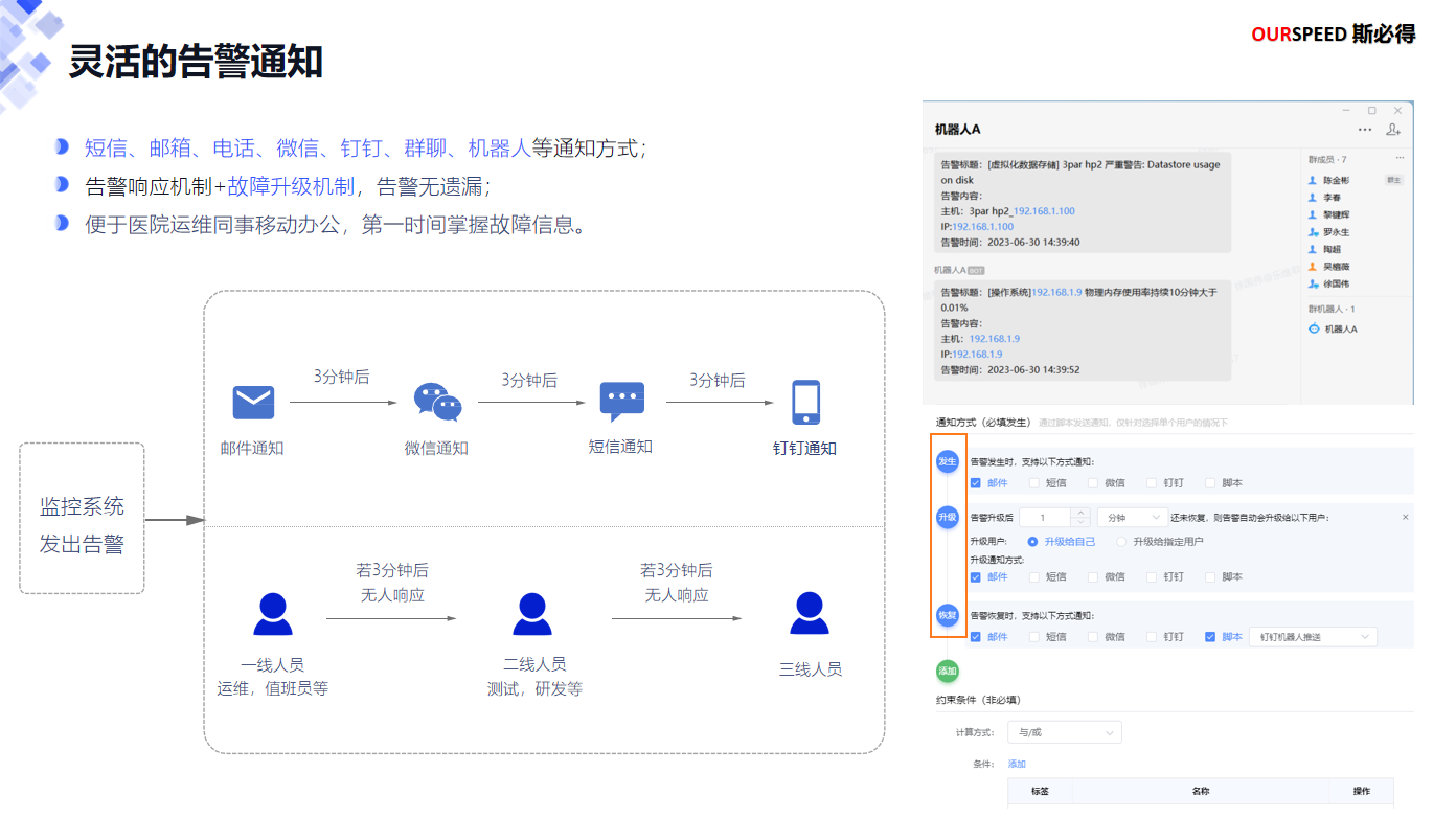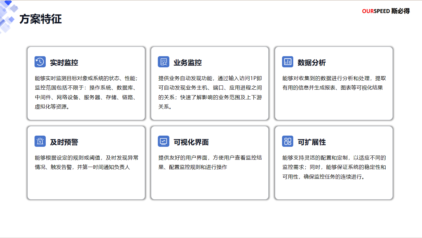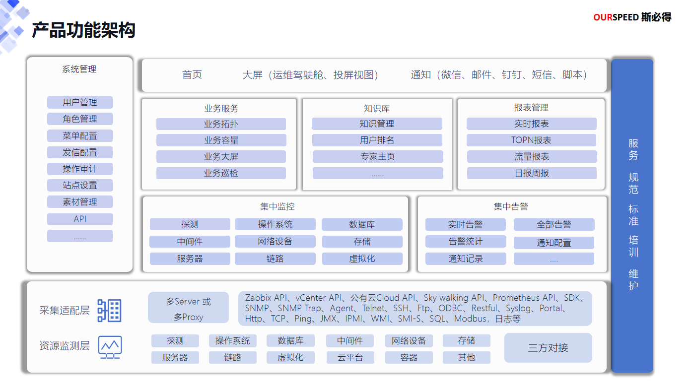 為更好的適應(yīng)高速業(yè)務(wù)發(fā)展,提高日常運維效率, 提供從IT基礎(chǔ)硬件設(shè)施、主機系統(tǒng)、小型機系統(tǒng)、網(wǎng)絡(luò)設(shè)備、機房環(huán)境、虛擬化、中間件、數(shù)據(jù)庫、攝像頭到業(yè)務(wù)可用性撥測的全鏈路一站式故障預(yù)警監(jiān)控、性能指標(biāo)和管理平臺,能全面、快速、有效的反應(yīng)當(dāng)前IT基礎(chǔ)架構(gòu)和業(yè)務(wù)系統(tǒng)的健康狀態(tài),進(jìn)一步降低業(yè)務(wù)宕機風(fēng)險,保障各業(yè)務(wù)支撐系統(tǒng)可靠、穩(wěn)定、高效地運行,進(jìn)一步提高用戶的滿意度和忠誠度,全面提升服務(wù)質(zhì)量。